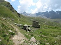 Sentiero che porta al Passo Invergneux - attraversamento della pietraia prima del Passo