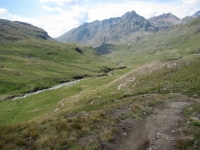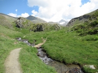 Il sentiero che scende dal Passo Invergneux nel vallone di Grauson - primo attraversamento del torrente