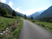 Il tratto in asfalto nel vallone dell'Urtier superata la "parete" di Lillaz
