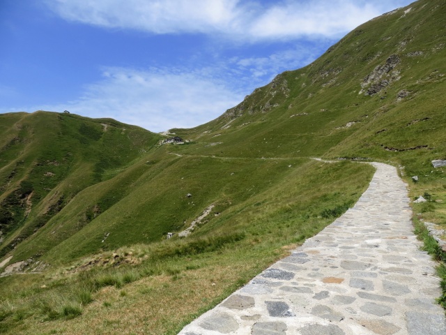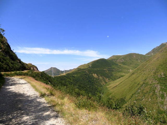 Il giro si svolge nel territorio montuoso dell’Alto Lago di Como con salita al panoramico e suggestivo Passo di San Jorio sul confine tra Italia e Svizzera toccando diversi rifugi che sono collocati lungo la via comasca (Rifugio Mottafoiada, Rifugio Giovo, Rifugio San Jorio). La salita al Rifugio Giovo, tappa obbligata per il Passo finale, in genere è percorsa per la classica via da Garzeno: l’itinerario qui proposto percorre invece una traccia alternativa che si sviluppa in maniera molto tranquilla ed ombreggiata nella Valle del Liro (Valle del Dosso) e che transita per il Rifugio Mottafoiada congiungendosi in seguito al consueto percorso. Questo percorso alternativo viene seguito partendo da Germasino (apparente comodo parcheggio in tutta la valle!!!) e muovendosi in direzione dell’abitato di Stazzona (quota 510), ove seguendo le indicazioni per il centro si incontrano segnalazioni per Mottafoiada. La traccia gps, dopo aver percorso circa 4,5 km su asfalto, giunge ad un bivio con evidenti indicazioni per il rifugio Mottafoiada: qui inizia una tranquilla strada asfaltata all’interno del bosco che sale progressivamente di quota all’interno della valle scavata dal torrente Liro, sul versante nord del Monte Cortafon, offrendo ottimi panorami sui circostanti verdi rilievi con sforzo abbastanza contenuto dato che i tratti di decisa salita sono limitati e comunque di breve percorrenza. Dopo circa 9,7 km dalla partenza il fondo diviene sterrato (con tratti più ripidi cementati) e nel giro di pochi minuti si perviene al Rifugio, sito a quota 1.316. Un semplice tratto sterrato porta ad incrociare la strada (bianca) che sale da Garzeno passando dalla Bocchetta di Germasino. Si segue ora senza alcun margine di errore l’indicazione per il San Jorio: prima di giungervi è necessario però transitare dal Passo del Giovo dove è collocato l’analogo Rifugio lungo la dorsale che separa la valle di San Jorio dalla Valle dell’Albano. Il raggiungimento di tale Passo non comporta particolari difficoltà dato che il fondo è buono e non vi sono tratti ripidi, peraltro risultando la pendenza smorzata da alcuni tornanti che risalgono le pendici del Motto di Parone. Giunti poi al Rifugio Giovo, quota 1.710 ca., si scorge immediatamente di fronte l’evidente militare che risale il pendio verso il visibile Rifugio San Jorio ed il sovrastante Passo. Nella parte iniziale la strada si presenta abbastanza impegnativa in quanto le pendenze sono maggiormente di rilievo ed il fondo è molto mosso, a tratti sconnesso; in seguito le cose “sembrerebbero” migliorare in quanto la traccia è stata cementata con taglio di pendenze attraverso rampe intervallate da ripidi traversi anche se, in realtà, ci si accorge che la percorrenza permane difficoltosa in considerazione del superamento delle diverse pietre che sono state collocate all’interno del cemento. In ogni caso, l’ultimo sforzo consente di giungere al Rifugio, quota 1.980. Dopo la doverosa sosta vale la pena salire sino al sovrastante Passo sfruttando una traccia pedalabile che si distacca a destra del Rifugio (attenzione: per una svista in sede di percorrenza, la traccia gps segue il parallelo sentiero pedonale privo di ciclabilità in quanto troppo diretto e dissestato) per poi proseguire, qui con ciclabilità totale al limite (solo per i più allenati) al sovrastante Oratorio che domina il panorama tra Val Morobbia (Svizzera) e valle di San Jorio/Valle dell’Albano (Italia) con sfondo sul Piano di Magadino/Lago Maggiore da una parte e sui rilievi della Valtellina dall’altra. Giunti sulla panoramica sommità si segue la traccia di sentiero, a tratti impegnativa per pendenza e tipologia di tracciato, che scende sul crinale erboso seguendo in linea di massima i tralicci dell’alta tensione (stando leggermente più alti ad un bivio che si incontra scendendo): le possibilità di sbagliare in ogni caso sono ridotte al minimo in quanto durante la discesa risulta ben visibile il Rifugio Giovo, punto di arrivo. Ivi giunti, vi si transita davanti dove inizia la vecchia strada militare che sale da Garzeno: trattasi di un percorso privo di rilevanti difficoltà che impone in ogni caso attenzione sia per la potenziale velocità di percorrenza sia per l’esposizione rispetto alla sottostante vallata dell’Albano. Alternando lungi traversi e veloci tornanti si scende progressivamente di quota, sulle pendici meridionali del Monte Cortafon, entrando nel bosco sino a giungere al km 29,5 ca dove, superato il nucleo abitativo di Brenzeglio con area di parcheggio (sterrata), si ritrova l’asfalto che risale da Garzeno e da qui in breve si scende sino al termine