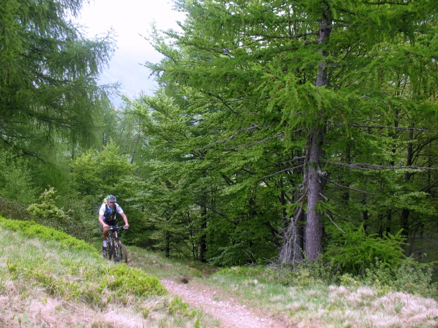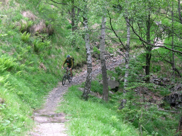 Single-track in direzione dell'Alpe Murecc - passaggio nel bosco