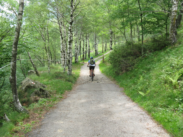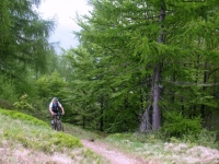 Single-track in direzione dell'Alpe Murecc -passaggio nel bosco