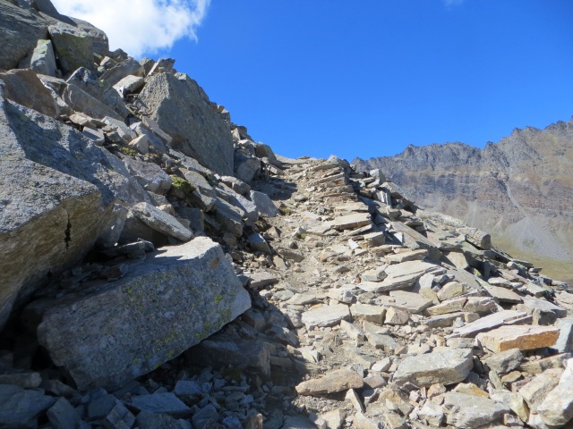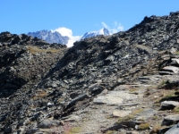 L'impedalabile sentiero per il Colle Manteau nel tratto di pietraia
