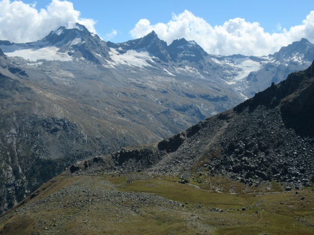 Vista dai Piani di Orvieille (da sx a dx) - Grand Nomenon (3.488), Grivola (3.969), Punta Bianca della Grivola (3.793) e Punta del Tuf (3.395)