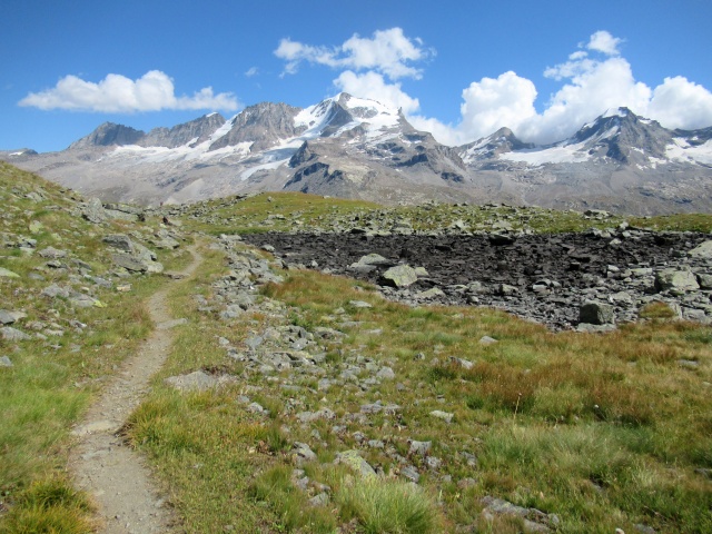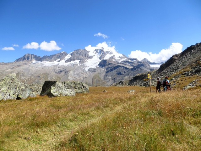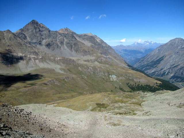 Piano di Orvieille - sullo sfondo il Monte Vélan (3.727 - sx) ed il Gran Combin (4.314 - dx)