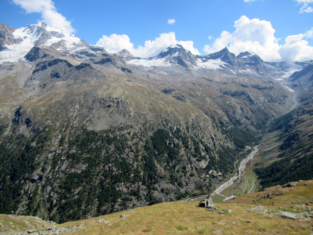 Gran Paradiso (4.061 - sx), Ciarforon (3.642 - centro) e vallone di Seyvaz (dx)
