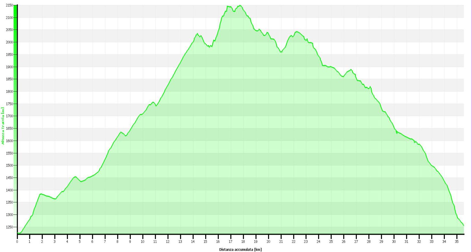 % sterrato/sentiero: 54% (considerare in aggiunta un altro 15% su asfalto più simile a sterrato in virtù della qualità del fondo)