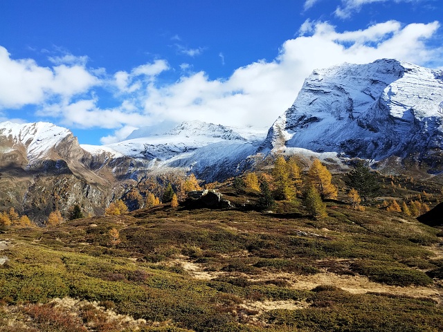 Panorama sulla Laggintal - A sinistra le punte innevate del Tällihorn e del Tossenhorn, sulla destra la Weissmies (4.017)