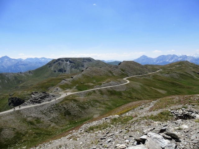 Panorama dalla Testa dell'Assietta - Monte Gran Costa e la strada che prosegue per il Col Lauson