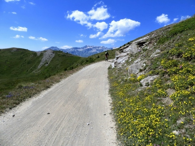 La discesa verso il Sestriere dalla parte superiore del Colle Basset