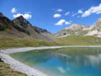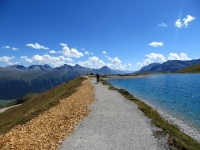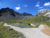 Lago d'Alv, sullo sfondo il Piz Nair e la strada che risale alla Fuorcla Schlattain