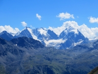 Panorama su (centro) Piz Roseg (3.937) e (dx) gruppo del Piz Sella (3.506) e del Piz Glüschaint (3.594)