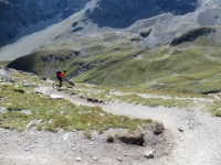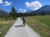 Trail di discesa in Val Suvretta - sullo sfondo il Passo Suvretta