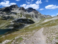 In direzione del Passo Suvretta - sulla sinistra il lago presente al Passo