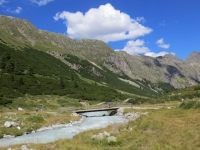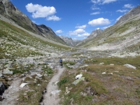 Il sentiero che scende dal Passo Invergneux nel vallone di Grauson - primo attraversamento del torrente