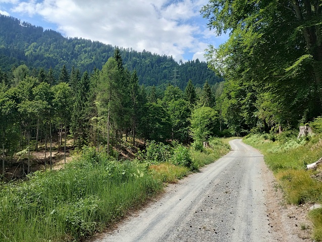 Lo sterrato che sale all'Alpe Sut e all'Alp Sura