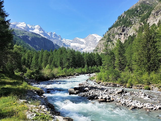 Partendo presso il comodo parcheggio alle porte di Cogne ci si muove in direzione del centro dell’abitato, poi attraverso una stradina sterrata nel prato di Sant’Orso si raggiunge il ponte sul torrente Gran Eyvia in località Buthier e di lì inizia la bella salita verso la fantastica Valnontey tenendo sempre la sinistra orografica del torrente; dopo il villaggio di Valnontey, al secondo ponte dopo le baite di Pra su Pià, si continua fino al villaggio di Valmianaz (e volendo poco oltre fino al termine della forestale) per poi ridiscendere in direzione di Cogne tenendo questa volta la destra orografica del torrente.
