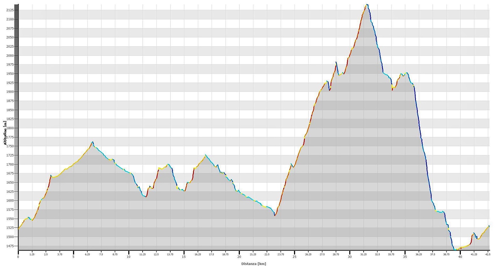impegno fisico: 8/10 (pur non essendo il dislivello complessivo elevato, i molteplici cambi di pendenza nel corso dell’itinerario ed alcuni strappi con pendenze elevate portano al rialzo la classificazione dell’impegno richiesto)