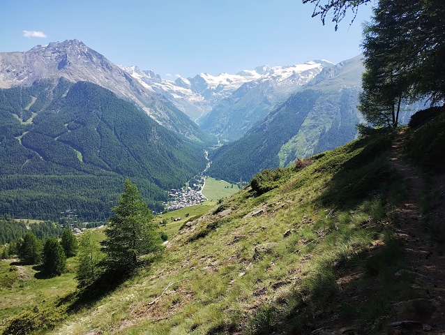 Panorama su Cogne e sulla Valnontey dal sentiero proveniente dal Pian della Cretetta