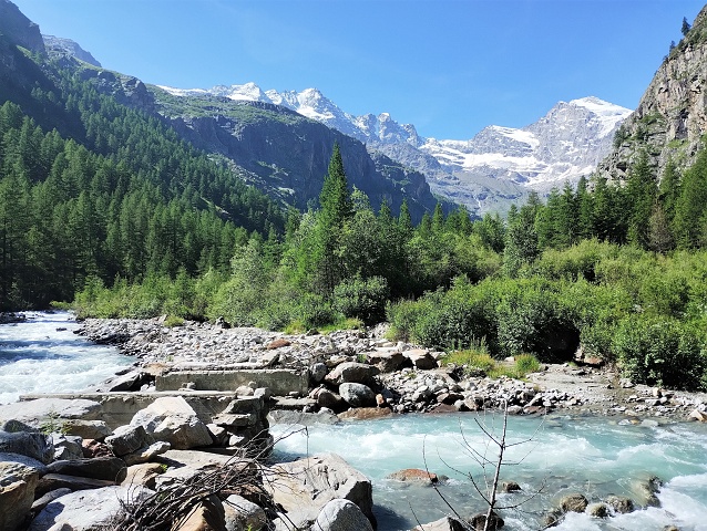 Valnontey - Torrente Gran Eyvia, sullo sfondo il Gran Paradiso