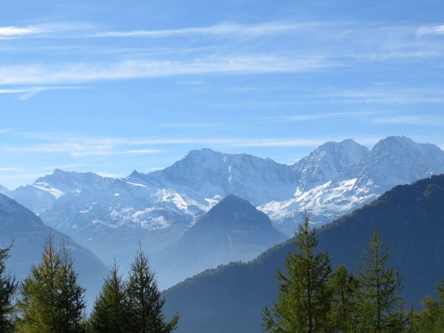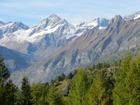 Vista dall'Alpe Marsasca, da sx a dx: Pizzo D'Andolla, Weissmies, Lagginhorn. Fletschhorn