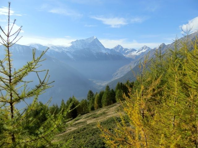 Salita all'Alpe Solcio, vista su Weissmies (sx) e Lagginhorn (dx)