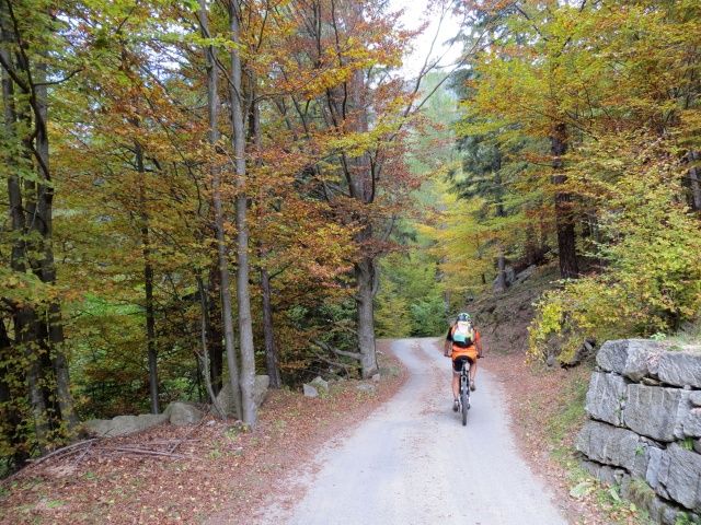 Salita in direzione di Argnai, iniziano i primi colori autunnali