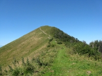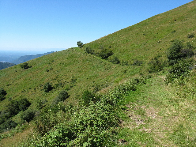 La Bocchetta di Terrabiotta e la sommità del Ponciv (sfondo sulle Grigne) scendendo dal San Primo lungo il traverso ciclabile