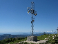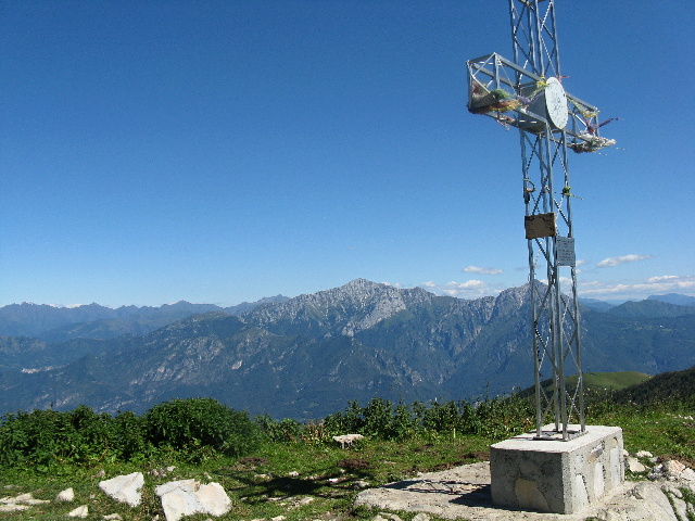 La croce posta sulla vetta del San Primo - Sullo sfondo le Grigne