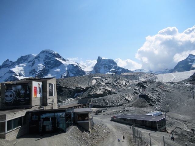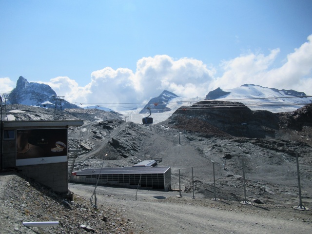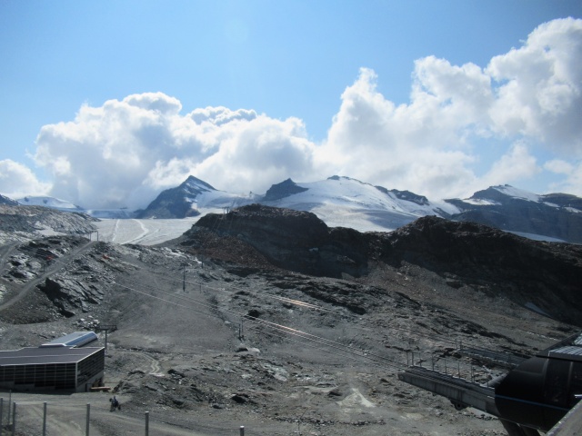 Trockener Steg - Panorama su Theodulhorn (sx, 3.169),  Furgghorn (dx, 3.451) e Theodulgletscher
