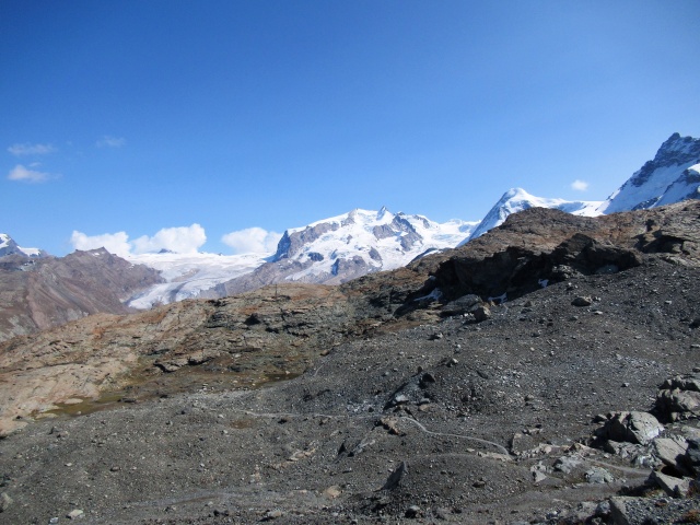Trockener Steg - Panorama sulla Nordend (sx, 4.608), Dufour (dx, 4.634)