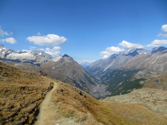 Discesa su sentiero alpino da Trockener Steg - Panorama su Zermatt