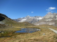 In direzione dello Schwarzsee - Grandioso panorama su Piccolo Cervino (dx), Breithorn (centro) e Liskamm (sx)