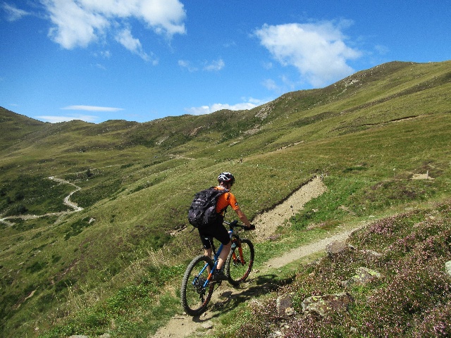 Bel tratto ciclabile di sentiero tra la Capanna Pairolo e la bocchetta di S. Bernardo