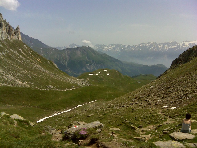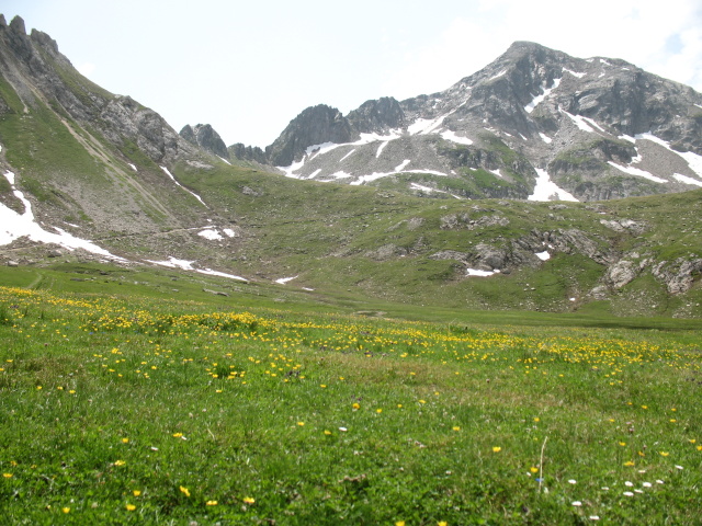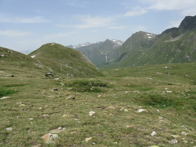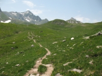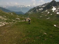 Dopo l'Alpe Carorescio in direzione del Passo del Sole, sullo sfondo il Passo delle Colombe