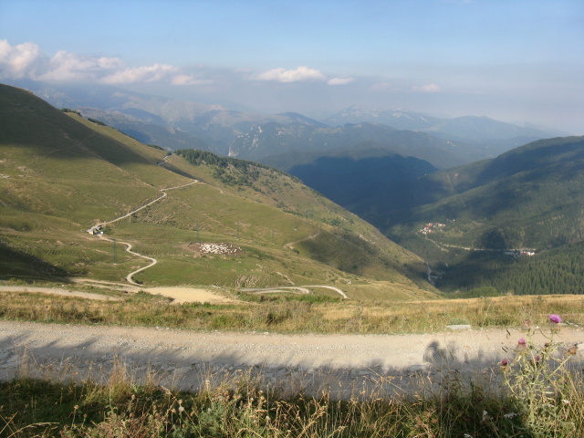 Colle della Boaria, tornante (nascosta dalle nuvole  Limone Piemonte)